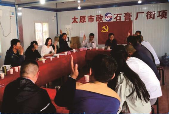 又訊 為深入推進(jìn)“黨建進(jìn)工地、引領(lǐng)促發(fā)展”活動(dòng),充分發(fā)揮黨組織在施工一線的戰(zhàn)斗堡壘作用,4月19日,康樂(lè)街及晉源片區(qū)、尖草坪片區(qū)臨時(shí)聯(lián)合黨支部正式成立。