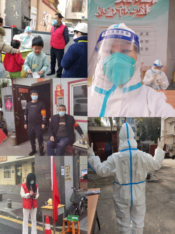 11月21日,機(jī)關(guān)黨總支號(hào)召全體黨員干部就地轉(zhuǎn)崗,黨員高欣、張曉風(fēng)、李萍、麻鄭霞、武婷婷,預(yù)備黨員張玉葉等同志,紛紛化身“志愿紅”“大白”沖鋒在戰(zhàn)“疫”一線,協(xié)助社區(qū)開展維持隊(duì)伍秩序、噴灑消毒液、核對(duì)人員信息、掃描檢疫碼、采集核酸等工作,展現(xiàn)了新時(shí)代“市政人”的風(fēng)采。