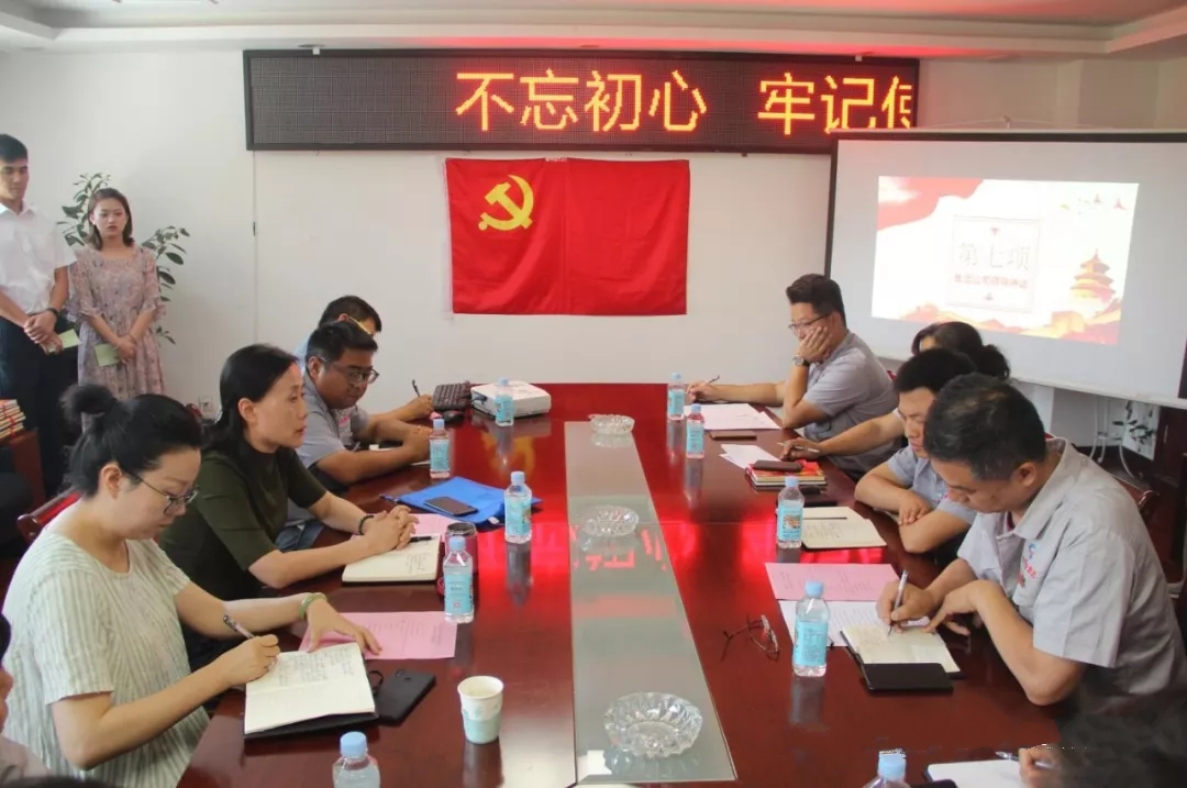 此次主題黨日活動共有八個環(huán)節(jié):唱國歌、看短片、話成長、送禮物、宣誓詞、談體會、作點評、聽歌曲。活動在莊嚴的《國歌》聲中拉開帷幕。在看短片環(huán)節(jié),大家共同學習了習近平總書記在中央政治局十五次集體學習上的講話精神,牢記初心使命。在話成長環(huán)節(jié)中,二公司經理岳志強、技術科科長冀新紅、測量員賈世鑫3位黨員分享了他們的成長歷程和工作感悟,進一步引領廣大黨員干部對標一流當先鋒,凝心聚力謀發(fā)展。集團公司黨委副書記、董事閆水平為黨員代表贈送了政治生日賀卡和《習近平新時代中國特色社會主義思想學習綱要》。全體黨員重溫入黨誓詞。在談體會環(huán)節(jié)中,二公司黨支部書記王自強談了自身體會,表示要爭做擁有“思想力量、黨性力量、宗旨力量、行為力量”的共產黨員,以新時期優(yōu)秀共產黨員的標準嚴格要求自己。