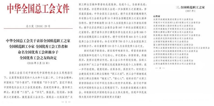 太原市政建設(shè)集團有限公司工會榮獲“全國模范職工之家”光榮稱號