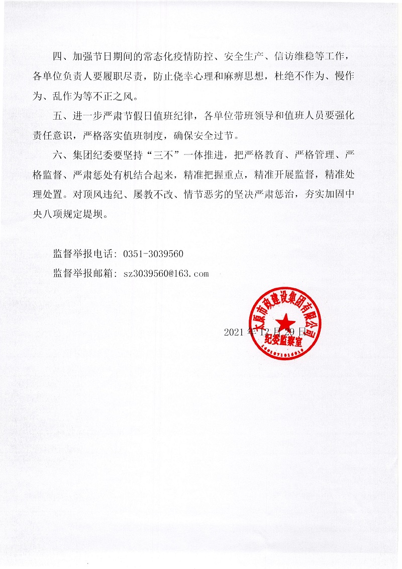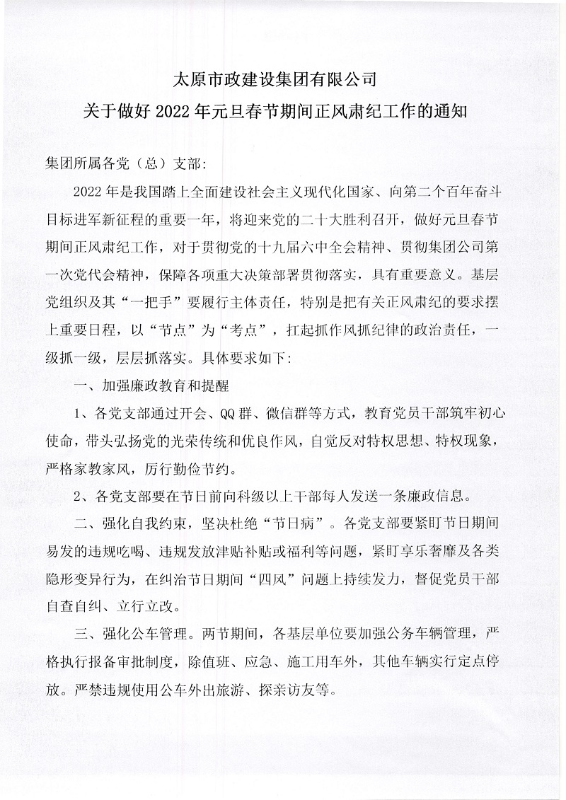 太原市政建設(shè)集團(tuán)有限公司關(guān)于做好2022年元旦春節(jié)期間正風(fēng)肅紀(jì)工作的通知
