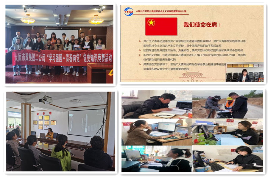 為慶祝中國共產(chǎn)黨成立100周年,在“五四”青年節(jié)之際,太原市政建設(shè)集團(tuán)有限公司各團(tuán)支部結(jié)合黨史學(xué)習(xí)教育,開展一系列內(nèi)涵豐富、形式多樣的主題活動,以展獨(dú)特風(fēng)采譜寫新時(shí)代市政青年華麗篇章。