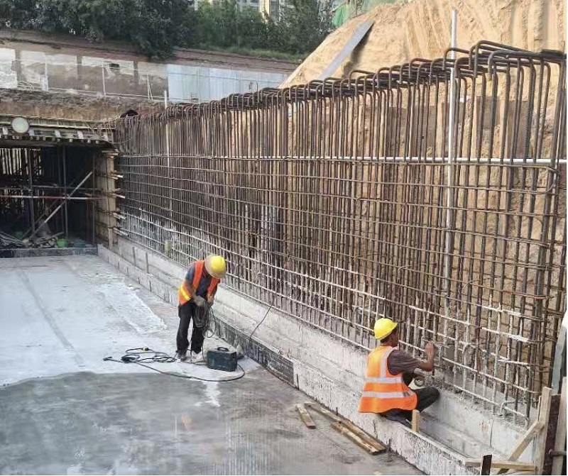 在K1+030處施工時(shí),南北方向有一條地下人行通道,項(xiàng)目部需要在通道內(nèi)安裝疏散指示燈、應(yīng)急指示燈、熒光燈等。在施工過(guò)程中,項(xiàng)目部緊跟道路施工方的施工進(jìn)度,當(dāng)?shù)缆肥┕し侥竟ぶ鹉>邥r(shí),項(xiàng)目部相關(guān)施工人員需要立即將鋼管預(yù)埋進(jìn)鋼筋架中,這就需要項(xiàng)目部和道路施工方緊密配合,施工員每日緊盯施工進(jìn)度,見(jiàn)縫插針式地完成管線預(yù)埋工序,為后續(xù)施工奠定了基礎(chǔ)。由于前期設(shè)計(jì)圖與施工實(shí)際情況有出入,無(wú)法確定電源箱的具體位置,現(xiàn)場(chǎng)技術(shù)負(fù)責(zé)人多次與設(shè)計(jì)院聯(lián)系,經(jīng)過(guò)不斷實(shí)地勘察、測(cè)量、畫(huà)圖對(duì)照,最終確定電源箱的實(shí)際位置,并在道路上增加了多條鋼管過(guò)路,確保送電時(shí)萬(wàn)無(wú)一失。