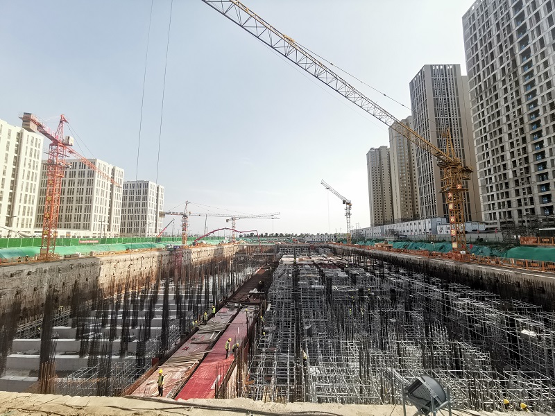 自開(kāi)工以來(lái),項(xiàng)目部從工程前期的超前謀劃、要素保障,到建設(shè)中的部署落實(shí)、節(jié)點(diǎn)把握,先后按工期節(jié)點(diǎn)目標(biāo)完成了三軸攪拌樁、地下連續(xù)墻、冠梁、錨索、底板等重點(diǎn)工序。在施工建設(shè)開(kāi)足馬力的背后,正是依靠項(xiàng)目部一項(xiàng)項(xiàng)“硬核”組織保障的強(qiáng)力支撐。同時(shí),項(xiàng)目部建立健全以項(xiàng)目經(jīng)理為責(zé)任人的質(zhì)量安全管理體系,緊盯目標(biāo)任務(wù),搶抓時(shí)間節(jié)點(diǎn),強(qiáng)管理、抓落實(shí)、促進(jìn)度,統(tǒng)籌部署人員配置、材料供應(yīng)、機(jī)械保障等方面,全體參建人員壓實(shí)崗位責(zé)任,采取“白+黑、5+2”模式,緊跟節(jié)點(diǎn)不松勁,加班加點(diǎn)確保各工序有序推進(jìn),同頻共振點(diǎn)燃助推項(xiàng)目發(fā)展的強(qiáng)引擎。