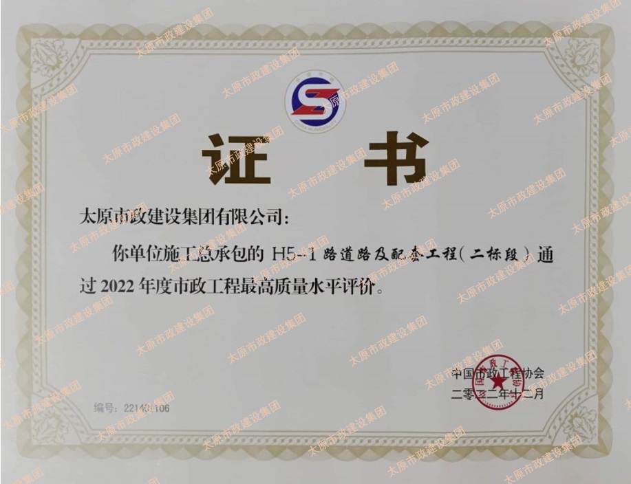 近日,集團(tuán)公司承建的H5-1路道路及配套工程(二標(biāo)段)通過了2022年度市政工程最高質(zhì)量水平評(píng)價(jià)。