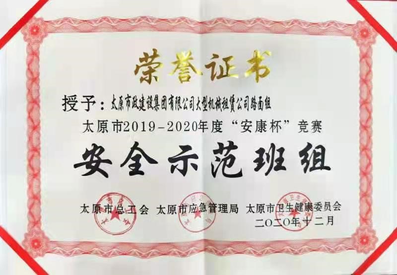 4月8日,租賃公司路面組榮獲太原市2019—2020年度“安康杯”競賽安全示范班組榮譽稱號。