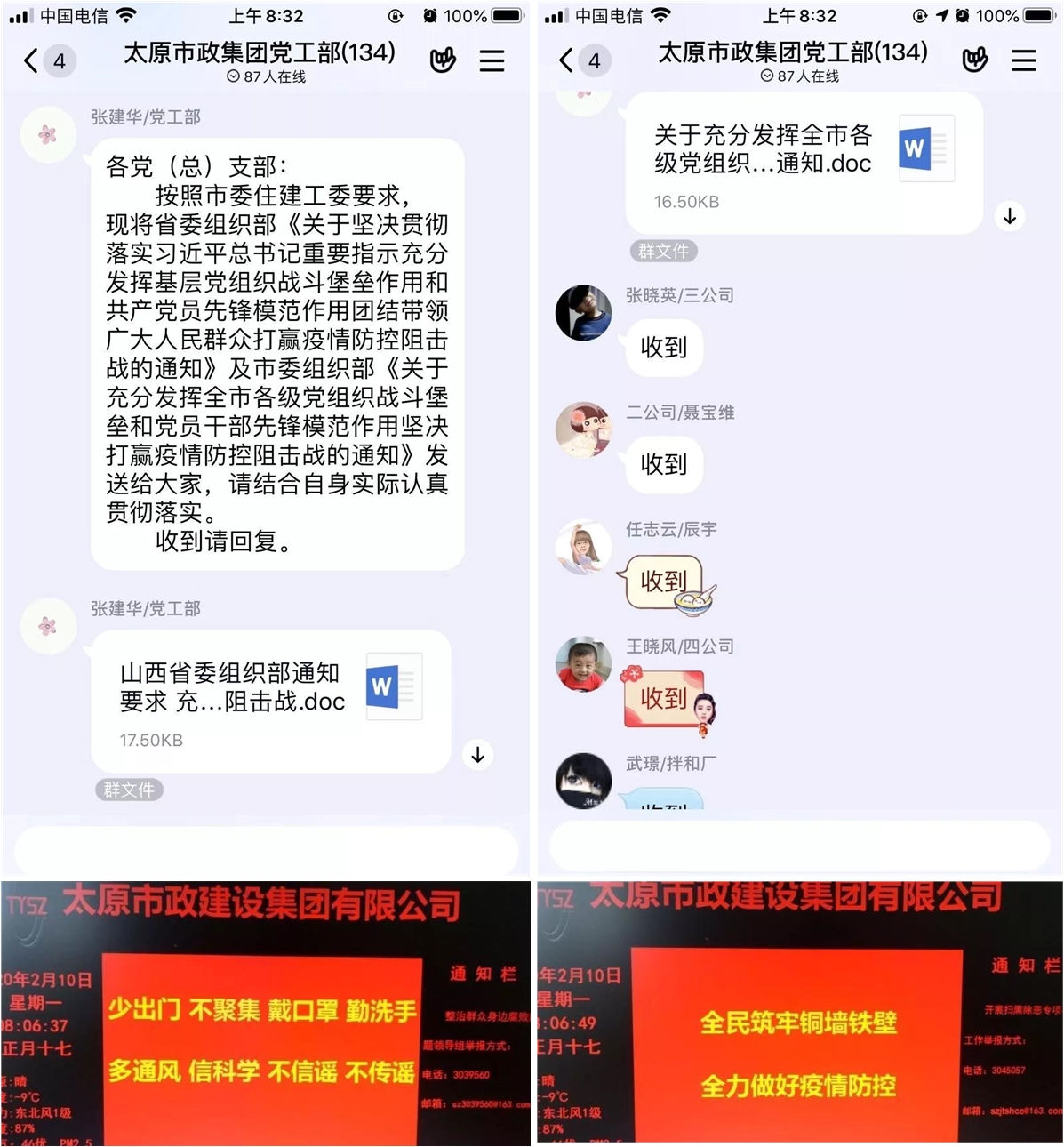 多措并舉,確保積極宣傳引導(dǎo)。新冠肺炎疫情發(fā)生后,集團(tuán)公司通過局域網(wǎng)、微信公眾號(hào)以及電子宣傳屏等多種方式宣傳疫情防治工作,積極向干部職工宣傳疫情防控各項(xiàng)規(guī)定、政策措施,大力普及安全預(yù)防知識(shí),及時(shí)發(fā)布疫情動(dòng)態(tài)信息和防控工作進(jìn)展,引導(dǎo)廣大干部職工科學(xué)認(rèn)識(shí)、理性應(yīng)對(duì),消除不必要的恐慌情緒,為打贏疫情防控阻擊戰(zhàn)提供了堅(jiān)強(qiáng)的輿論保障。