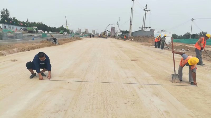 四公司承建的龍城大街東延工程(東峰路—太榆界)全線75%的地段為自重濕陷性場地,地基濕陷性等級為IV,為有效確保施工質(zhì)量,項(xiàng)目部選擇有代表性路段進(jìn)行試驗(yàn)。施工中,項(xiàng)目部對路基下2米深度內(nèi)的濕陷性黃土采用9%灰土進(jìn)行處理,處理方法采用原地面清表超挖1.2米,超挖后土基頂面采用了沖擊碾壓消除路基土濕陷,然后采用素土分層壓實(shí)回填至路床頂面以下2米處。路基填土采取水平分層填筑,分層壓實(shí),分層厚度按試驗(yàn)段提供工藝參數(shù)確定,路槽下全斷面回填2米厚9%灰土隔水層。碾壓前為了保證含水量達(dá)到最佳含水量的±2%,質(zhì)檢員及時(shí)采用酒精燃燒法檢測現(xiàn)場實(shí)含水量,采用晾曬或?yàn)⑺姆椒ㄊ购糠弦蠛蠹皶r(shí)進(jìn)行碾壓,碾壓過程遵守“先低后高,先慢后快,先靜后振、輪跡重疊”的壓實(shí)原則。碾壓成型后,質(zhì)檢人員用環(huán)刀法檢測現(xiàn)在壓實(shí)度,保證處理后的地基符合設(shè)計(jì)及規(guī)范要求。項(xiàng)目部通過試驗(yàn)確定了濕陷性地質(zhì)路基施工的壓實(shí)工藝主要參數(shù)、過程工藝控制方法、質(zhì)量控制標(biāo)準(zhǔn)、安全及環(huán)保措施等各項(xiàng)數(shù)據(jù)。在全線施工過程中由于試驗(yàn)段的工藝參數(shù)合理,施工方法得當(dāng),使得路基施工每個(gè)檢驗(yàn)批一次報(bào)驗(yàn)合格率達(dá)到100%。