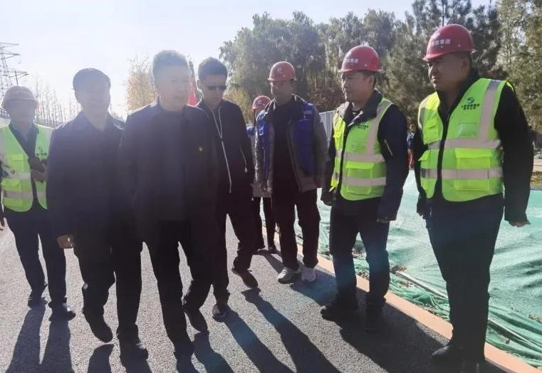 11月3日上午,濱河自行車專用道工程一標段攝樂橋南匝道進行彩色路面鋪設(shè)。集團公司黨委書記、董事長郝東輝深入一標段彩色路面鋪裝現(xiàn)場調(diào)研指導工作。