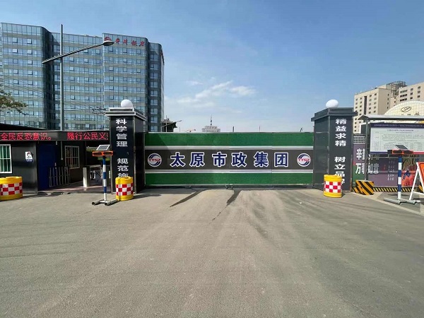 該工程作為太原市今年的重點(diǎn)工程,二公司上下高度重視,開工前召開安全文明施工動員會,要求全員認(rèn)真執(zhí)行六個(gè)百分百相關(guān)要求,提前規(guī)劃安全文明施工具體內(nèi)容,全力打造安全文明標(biāo)準(zhǔn)化工地。項(xiàng)目部認(rèn)真落實(shí)創(chuàng)建綠色文明工地要求,嚴(yán)格執(zhí)行《太原市建設(shè)工程安全文明標(biāo)準(zhǔn)化管理手冊》標(biāo)準(zhǔn),注重創(chuàng)新改善項(xiàng)目部整體外觀形象,重新設(shè)計(jì)了項(xiàng)目部入口和圍擋,采用反光噴繪布覆蓋工地大門,并對大門周邊輪廓進(jìn)行不銹鋼條鑲嵌,方便夜間車輛進(jìn)出工地;在大門門柱上方加裝“帽檐”,四邊用鋼條裝飾,讓大門整體更顯美觀。同時(shí),項(xiàng)目部根據(jù)廣場周邊人口密集、商場眾多等情況,在圍擋的設(shè)計(jì)上進(jìn)行改良,將傳統(tǒng)的3毫米鋼板改為5毫米鋼板,并用噴繪布全范圍覆蓋,提高了圍擋整體牢固度和美觀度。