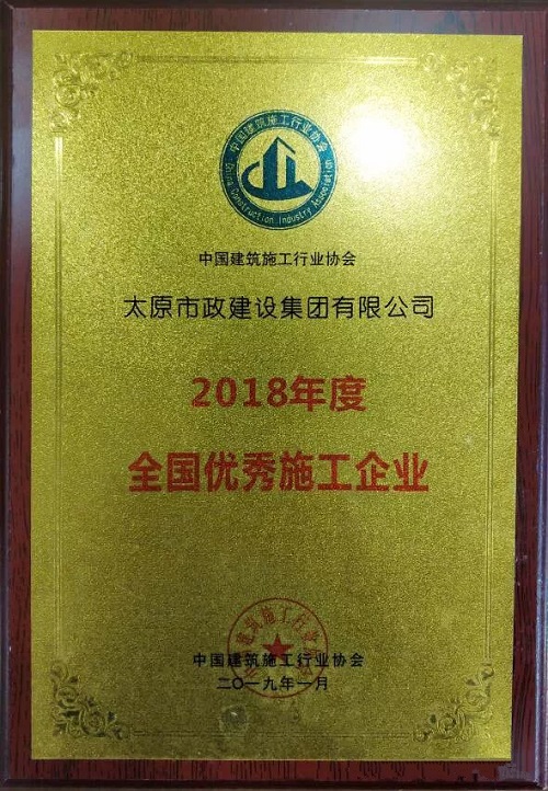 太原市政建設(shè)集團(tuán)有限公司榮獲“2018年度全國優(yōu)秀施工企業(yè)”榮譽稱號 發(fā)布時間:2019-01-15 08:35:23  來源:本站  閱讀:30586