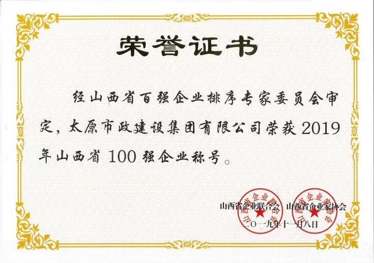 集團公司榮獲“2019年山西省100強企業(yè)”稱號,排名第39位。集團公司將持續(xù)深入踐行“以質(zhì)量求生存、靠誠信促發(fā)展”的經(jīng)營理念,增強發(fā)展信心,化挑戰(zhàn)為機遇,在爭創(chuàng)一流企業(yè)的道路上不斷取得新的成就,為實現(xiàn)我省經(jīng)濟持續(xù)健康發(fā)展和全面建成小康社會做出新的貢獻。