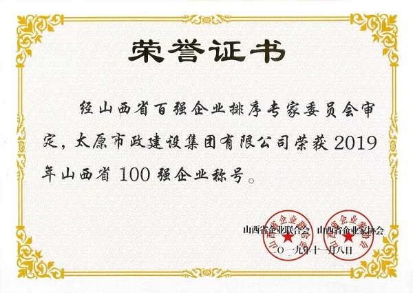 11月8日,山西省企業(yè)聯(lián)合會、山西省企業(yè)家協(xié)會攜手山西財經(jīng)大學向社會發(fā)布“山西企業(yè)100強排行榜”,同時發(fā)布《山西企業(yè)100強(年度)發(fā)展報告》。太原市政建設集團有限公司榮獲“2019年山西省100強企業(yè)”稱號,排名第39位。