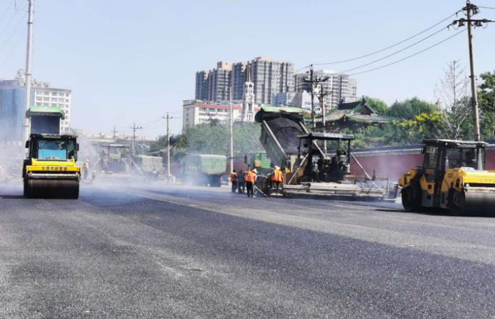 8月11日早上9點(diǎn),在四公司承建的水馬路建設(shè)工程施工現(xiàn)場(chǎng),項(xiàng)目部全體施工人員早已為工程北段下面層瀝青混凝土攤鋪?zhàn)鲋黜?xiàng)準(zhǔn)備工作。當(dāng)一車車滾燙瀝青被倒入瀝青攤鋪機(jī)的入料口,隨著攤鋪機(jī)的前進(jìn),瀝青混凝土被攤鋪到地面,并散發(fā)著刺鼻的氣味,大家來(lái)不及擦拭臉上的汗水,緊隨攤鋪機(jī),用手里的摟耙不停地整平著粒料。時(shí)值酷暑,全體施工人員的臉被熱氣炙烤得發(fā)燙,身上的衣衫也早已被汗水浸濕,但大家沒(méi)有喊苦喊累,默默堅(jiān)守在各自的崗位上,認(rèn)真做好每一道工序,確保路面瀝青鋪設(shè)的質(zhì)量。隨著壓路機(jī)往復(fù)碾壓,一條黝黑平整的柏油路逐漸有了雛形,接下來(lái)項(xiàng)目部將會(huì)進(jìn)行其他路段的攤鋪工作。
