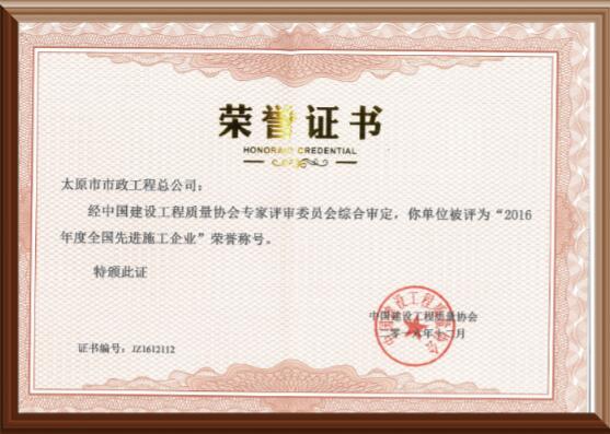 2016年全國先進(jìn)施工企業(yè)