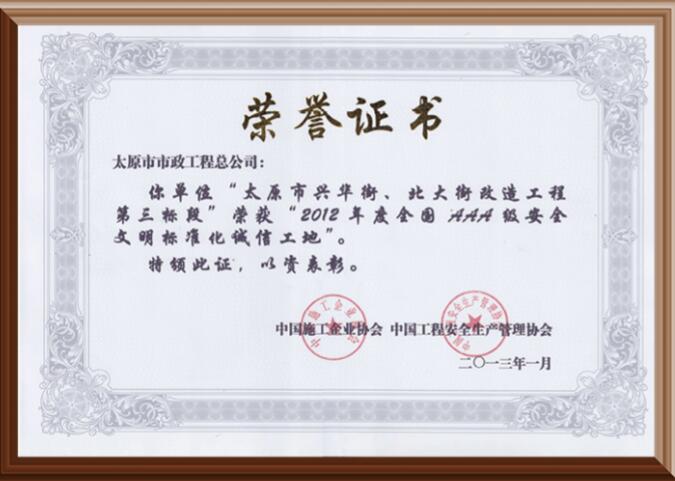 2012全國3A級安全文明標(biāo)準(zhǔn)化誠信工地